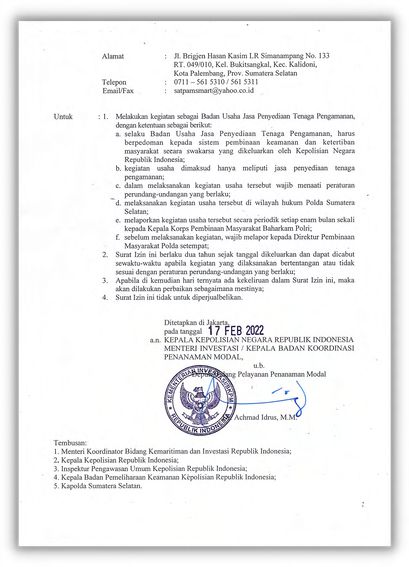 SIO Mabes Polri - KANTOR PUSAT : PALEMBANG